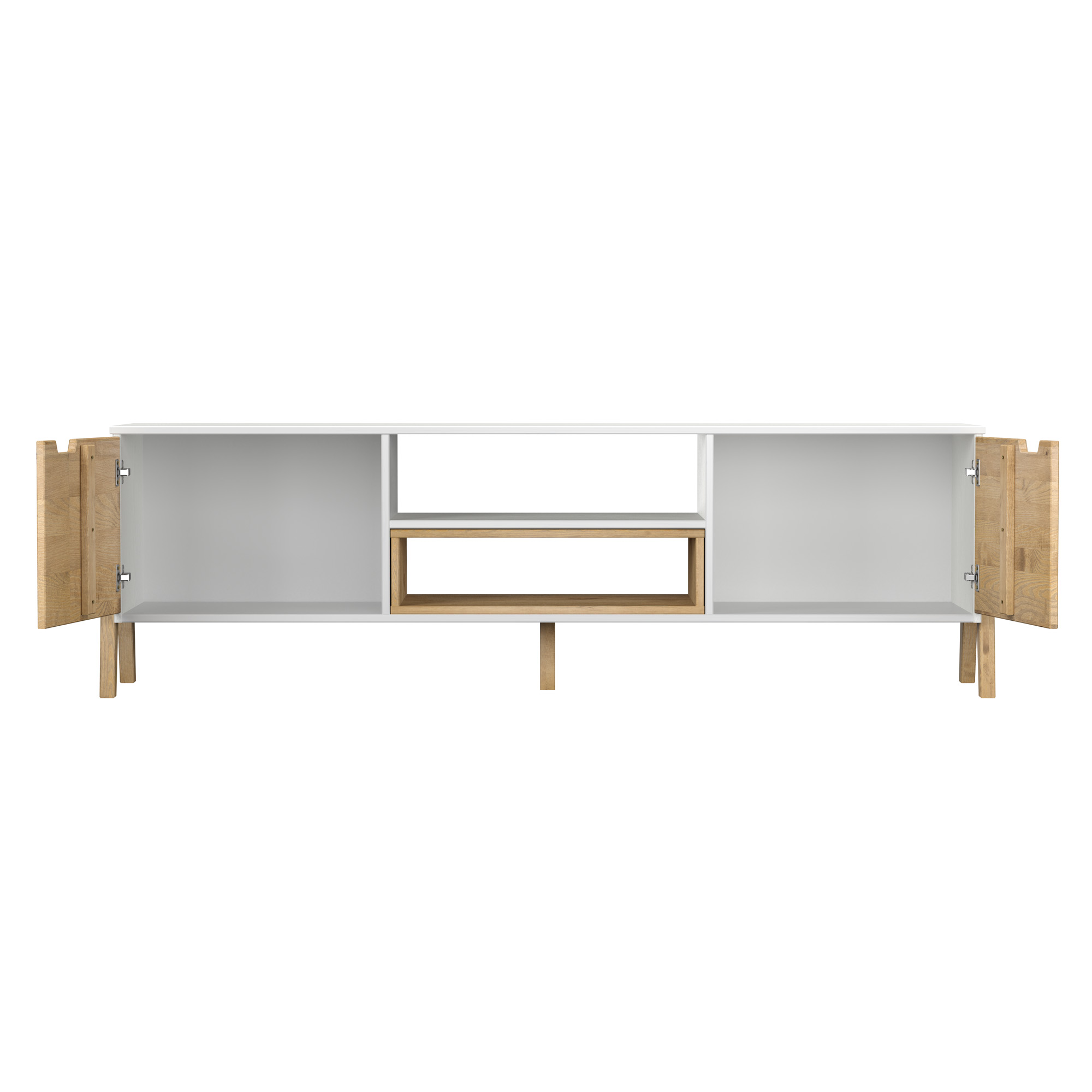 Solid wood tv stand 2 doors 100% DIY, includes assembly guide 100% reforestered pine wood Product size 20x63x17 in Minimalist and Practical Produced in Brazil Premium quality