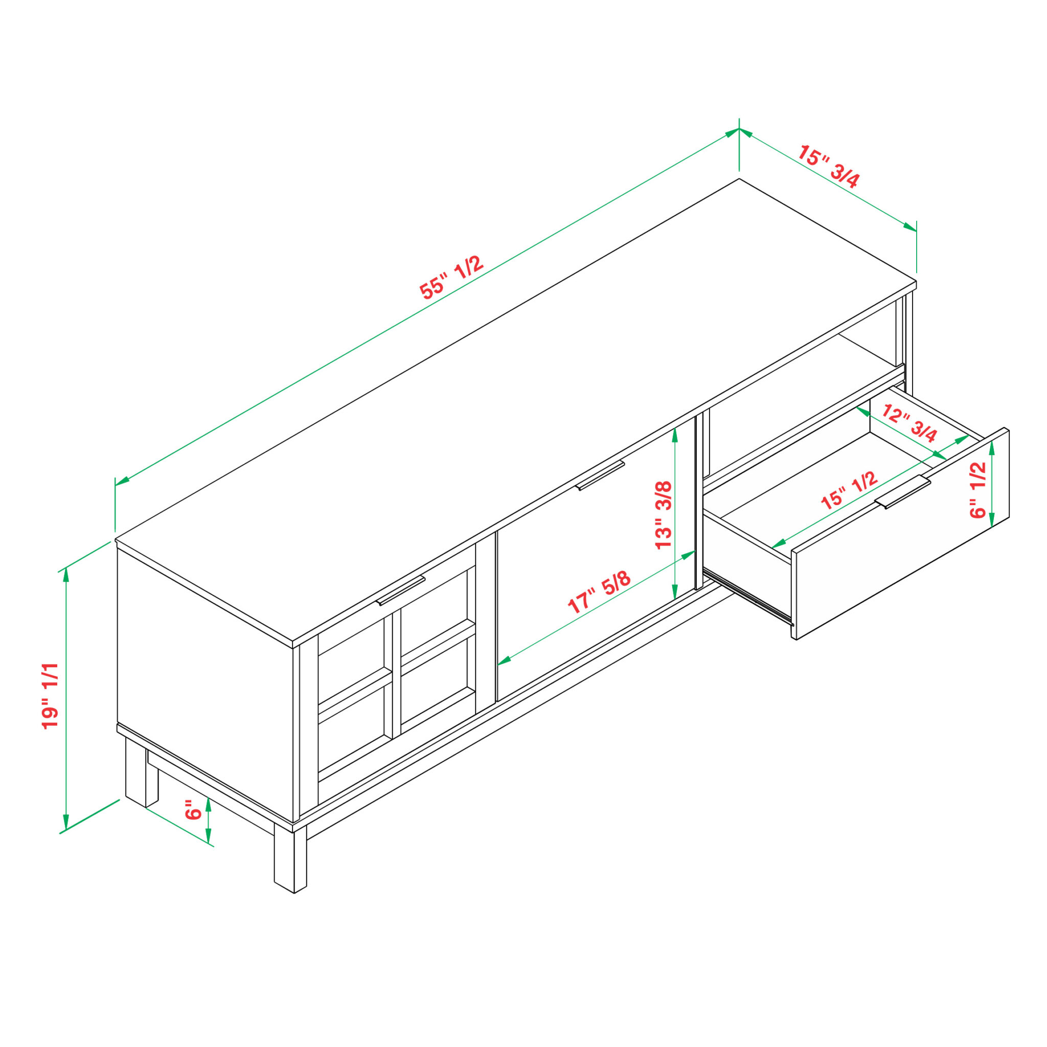 5.00 in (height) x 60.00 in (width) x 19.00 in (depth)